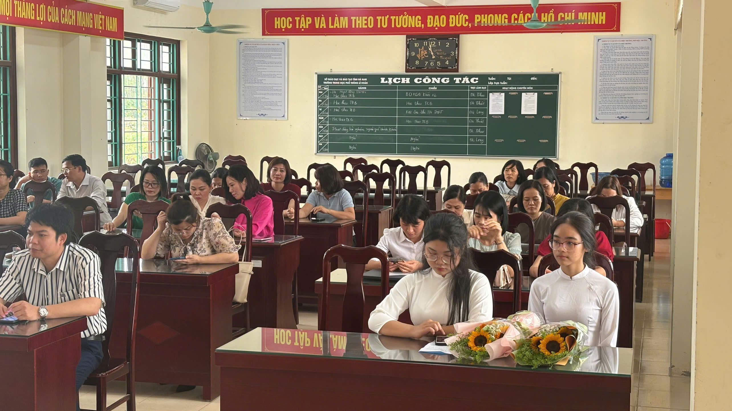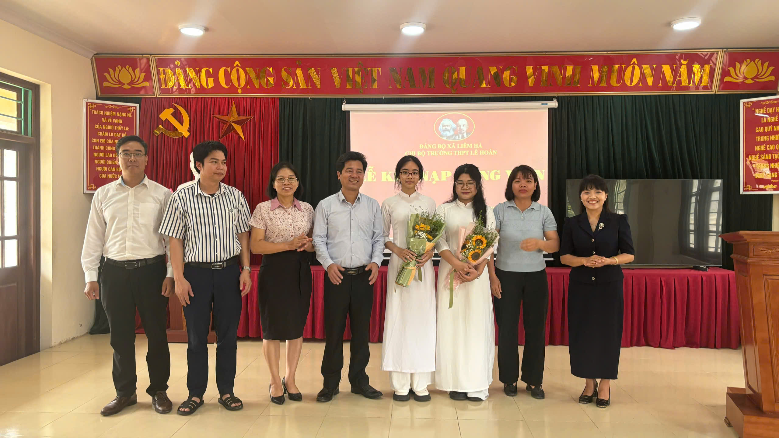 Thực hiện quyết định của Đảng bộ xã Liêm Hà, tỉnh Ninh Bình, ngày 30/3/2026, Chi bộ trường THPT Lê Hoàn tổ chức Lễ kết nạp vào Đảng Cộng sản Việt Nam cho hai quần chúng ưu tú là học sinh xuất sắc, tiêu biểu trong học tập, rèn luyện và hoạt động phong trào là